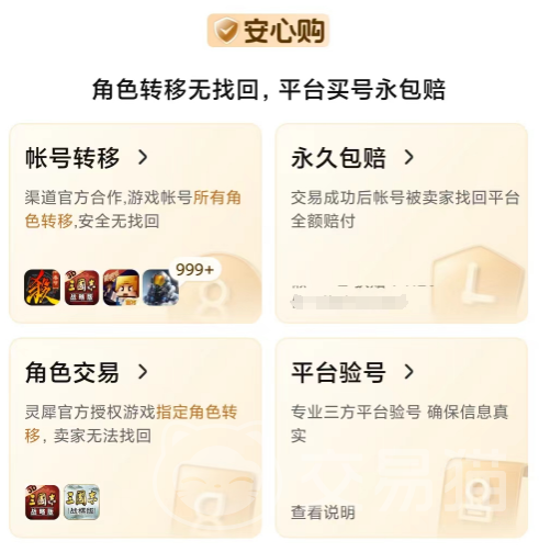 如果說大家看中了一個賬號,但是它沒有體現(xiàn)出安心購怎么辦呢?所有的賬號在最后的交易環(huán)節(jié),都會提示你是否進(jìn)行附加的保險購買,但購買全憑自愿,小編的建議是優(yōu)先選擇安心購賬號,若是你購買的賬號金額特別大,可以按照比例去購買一定時限的保險,且合作的保險也都是界內(nèi)很有名的大公司,大家可以說是一看便知曉。