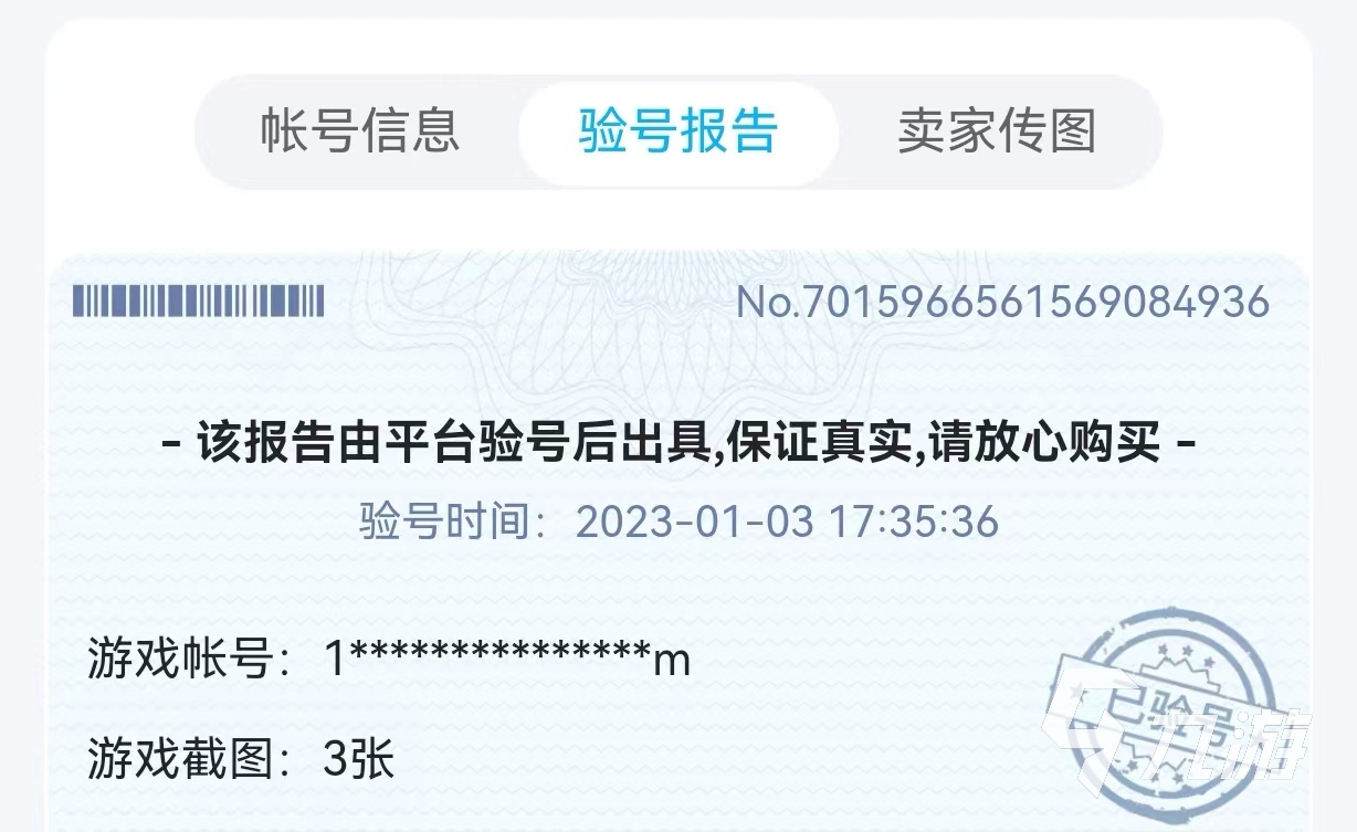 為了賬號(hào)的曝光度玩家可以先進(jìn)行驗(yàn)號(hào)哦,平臺(tái)完成后會(huì)提供一份驗(yàn)號(hào)報(bào)告,所有報(bào)告都是唯一且真實(shí)有效的,賬號(hào)更加有信服力,點(diǎn)擊量也就越高,可以更加迅速的幫助玩家出售。驗(yàn)號(hào)報(bào)告會(huì)顯示在賬號(hào)信息中供買家查看。