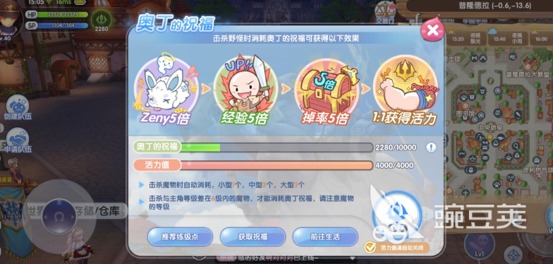 奧丁的祝??梢蕴峁┰鲆嫘缘腷uff類型,可以提高玩家刷怪的收益率,從而獲得更多經(jīng)驗(yàn)金幣與爆出稀有道具,同時(shí)奧丁的祝福能夠給玩家提供每日活力獲取來(lái)源,換算方式為1:1等量交換。玩家想要該效果獲得需要從左上角奧丁圖標(biāo)中進(jìn)入手動(dòng)開啟,但需要注意增益值會(huì)有上限,會(huì)隨著玩家等級(jí)提升而擴(kuò)充容量。