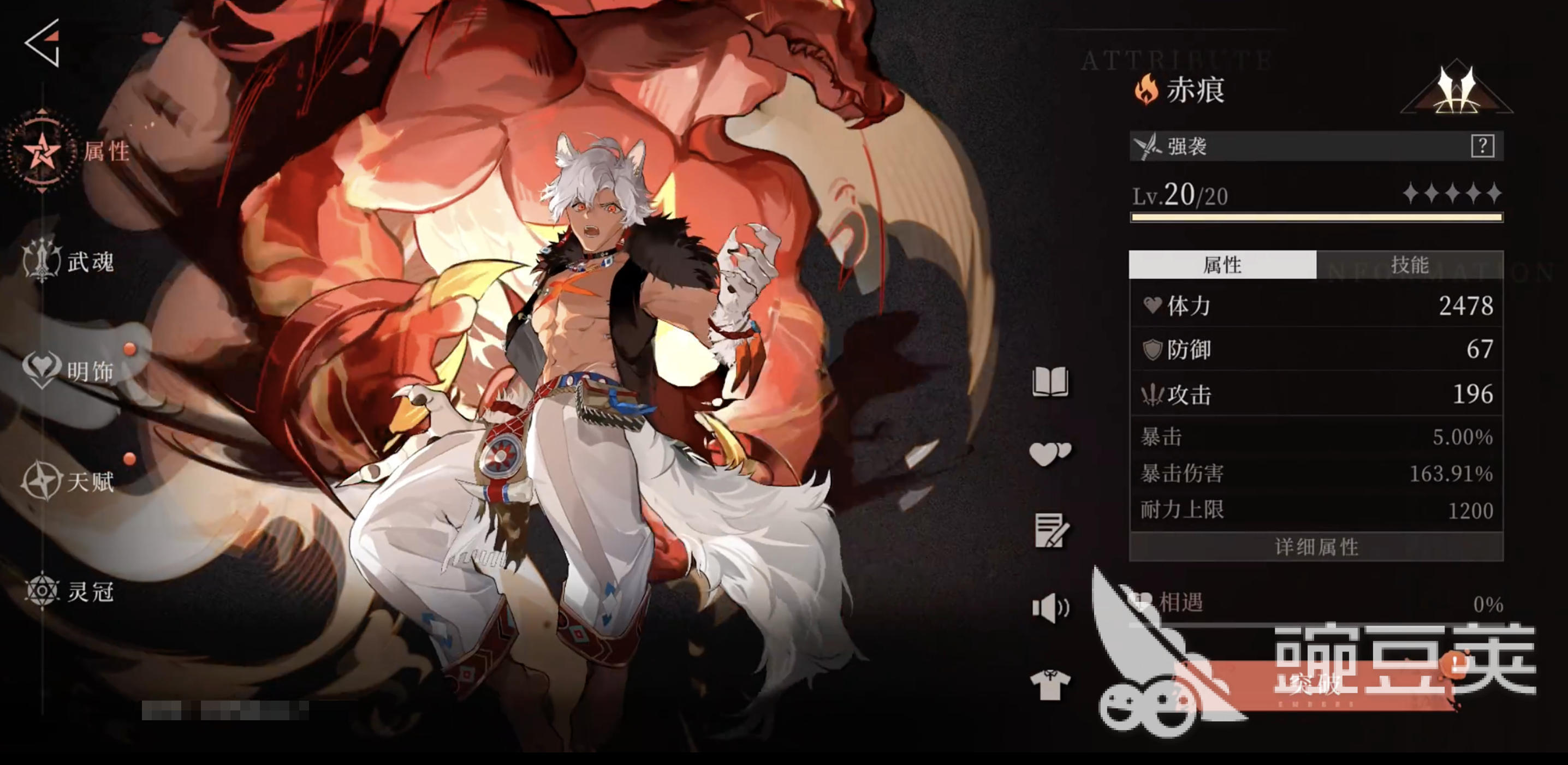 赤痕的定位是破甲副C,傷害依賴隊(duì)友先破甲,觸發(fā)敵人倒地后才能獲得額外增傷。實(shí)戰(zhàn)中要時(shí)刻觀察敵人的弱點(diǎn)標(biāo)記,與隊(duì)友赤荒配合打盾效率才高。他的操作門檻較高,更適合熟悉機(jī)制的玩家在Boss戰(zhàn)中使用。