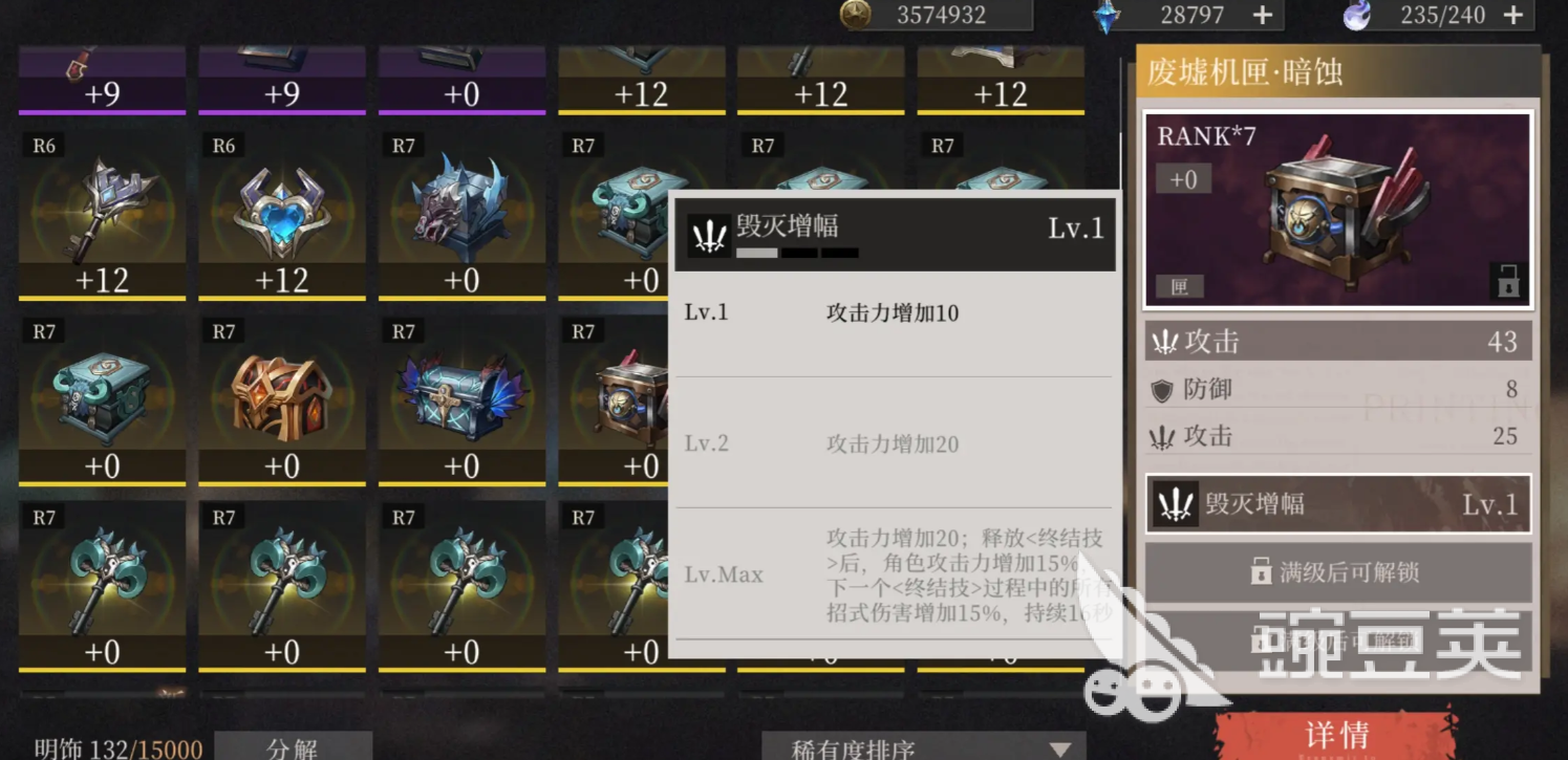 玩家可以通過明飾重構(gòu)的方式,來解鎖副屬性詞條,隨后將詞條的等級累積到九級,在九級之后,將會自動開啟重構(gòu)功能,玩家可以直接選擇額外的詞條屬性,以及優(yōu)化配件,附屬屬性詞條可以逐步培養(yǎng)四個迥異效果,玩家可以專注輸出以及生存,例如毀滅增幅以及超載續(xù)航等等,能夠快速提升角色的成長效率。