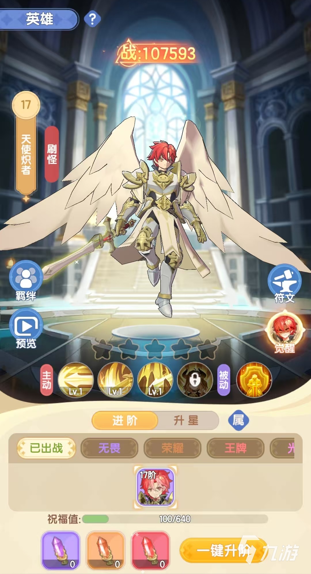 這里小編以解鎖英雄玩法之后直接贈(zèng)送的最初級(jí)英雄天使熾者為例,天使熾者是一個(gè)非常擅長(zhǎng)刷怪的英雄,點(diǎn)擊進(jìn)入到英雄功能之后,就可以看到直接有覺(jué)醒圖標(biāo)??梢蕴崆斑M(jìn)行一下該英雄的覺(jué)醒預(yù)覽,覺(jué)醒之后無(wú)論是外形還是技能都發(fā)生了很大的變化。至于覺(jué)醒條件,則是需要有對(duì)應(yīng)的英雄,然后解鎖相應(yīng)的神器,最后拿到激活材料就可以了。游戲中的每個(gè)英雄都有自己所對(duì)應(yīng)的神器,只有這二者全部激活,才能進(jìn)行接下來(lái)的覺(jué)醒。至于其他英雄,雖然獲取難度上有所區(qū)別,但是覺(jué)醒條件都是一樣的。