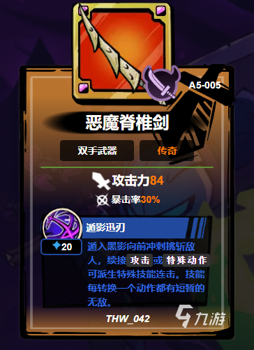 耗藍(lán)20,技能附帶位移和無敵幀,連招流暢,是高機(jī)動(dòng)與傷害兼?zhèn)涞拇髣ξ淦?,手部乘區(qū)優(yōu)秀。