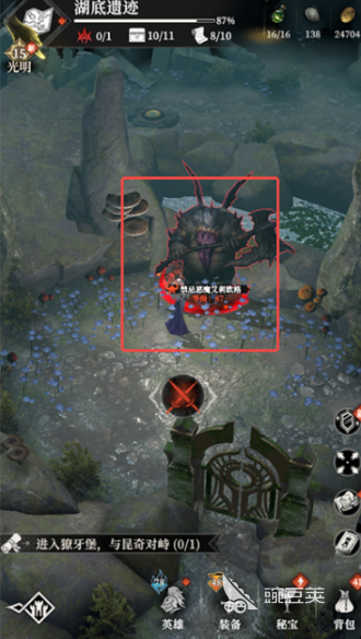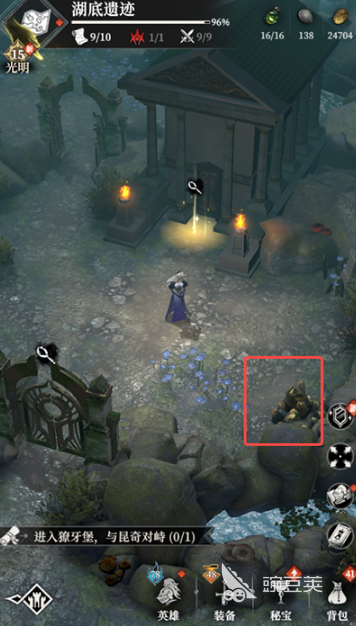 套裝選擇上菲歐娜,骨語,訊失,神官必帶能量套,其他可以隨意,用這一套將這里的boss禁忌惡魔給擊敗后,對(duì)話石碑能得知房子的秘密,按照線索左左上右的方式進(jìn)入秘宮能獲得大量物資,并且擊殺boss后還能在下方激活礦井玩法。