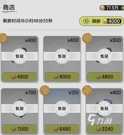 該商店中玩家可以看到各種各樣的雜貨,可以利用金幣去購買這些雜貨,在這些雜貨中有大量的材料資源,這些資源有時候會有折扣獎勵,大家需要每天去這商店中去以折扣價清理這些資源,過程中大家還可以進行刷新,這商店每天都有10次刷新機會,每次刷新需要花費4000金幣,這里建議大家多利用刷新去刷自己缺的材料去買,這么一來在這一章中就不會出現(xiàn)缺資源的情況了。