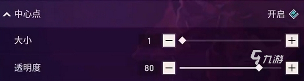 然后切換到“不開(kāi)鏡準(zhǔn)星”這一欄,這里建議把“準(zhǔn)星描邊”和“中心點(diǎn)”開(kāi)啟,在中心點(diǎn)的下拉菜單中可以選擇調(diào)整準(zhǔn)星的大小和透明度,大小可以設(shè)置成1或者2,透明度80,顏色隨自己的喜好,盡量選擇一些深色的。