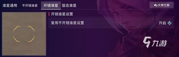 然后是“開(kāi)鏡準(zhǔn)星”,在這里把“復(fù)用不開(kāi)鏡準(zhǔn)星設(shè)置”給開(kāi)啟,這樣主武器開(kāi)鏡的時(shí)候,準(zhǔn)星依舊不會(huì)發(fā)生變化,鏡頭視野依舊清晰,不至于突然的變化讓玩家不容易聚焦。
