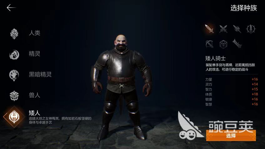 目前游戲一共開(kāi)放了人類、精靈、黑暗精靈、矮人和獸人這五大種族,如果想要成為矮人騎士,首先需要先選擇矮人,然后選擇成為矮人騎士就可以了。矮人騎士的特點(diǎn)是能夠裝備單手劍和盾牌,擅長(zhǎng)在近距離抵擋敵人攻擊,可以穩(wěn)定進(jìn)行戰(zhàn)斗。