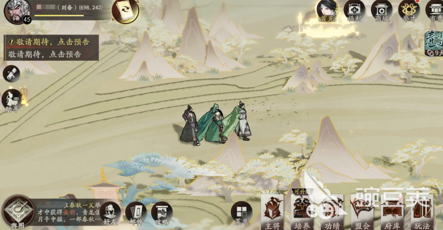 來源: 極光 作者: 狂戰(zhàn)士 2025年10月30日 16:22三國望神州劉備劇情線究竟如何通關(guān)呢?肯定有諸多選擇劉備線的主公們,都非常的疑惑了,在劉備線當(dāng)中,玩家需要白手起家,從賣草鞋的平民開始,一步步成為亂世仁君,小編這一期就給大家整理出來了,劉備劇情線的通關(guān)攻略,希望這期內(nèi)容可以對大家有所幫助喲~