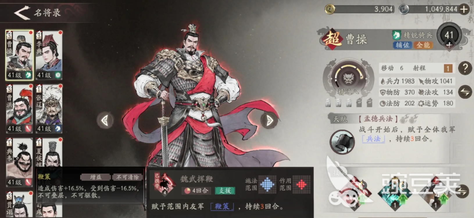 曹操的副將搭配,推薦優(yōu)先考慮加兵力的。主線很多關(guān)卡都卡著 “曹操不死” 的條件,保住他的命是首要目標,所以生存向的副將,比如副將曹純提供受到普通攻擊的傷害降低12%。
