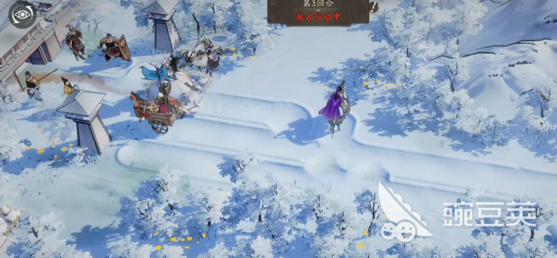 第三回合先讓呂玲綺與關(guān)羽合擊擊殺上方的盾牌兵,呂玲綺觸發(fā)再動(dòng)繞到關(guān)羽旁邊,再次觸發(fā)合擊效果擊殺敵方大將。戰(zhàn)斗回合結(jié)束后讓張遼占據(jù)營(yíng)寨,關(guān)羽到后方休養(yǎng)避免殘血被擊殺,讓張遼代替抗傷害并反擊。之后利用營(yíng)寨的戰(zhàn)斗回血機(jī)制,在敵方回合利用反擊讓三個(gè)防守兵都變成半血。再用呂玲綺的移動(dòng)分別繞后打出合擊。在剩下最后一個(gè)敵人時(shí),可以讓休養(yǎng)回復(fù)部分體力的關(guān)羽再次上千,打出兩次合擊傷害,從而殲滅所有敵人。