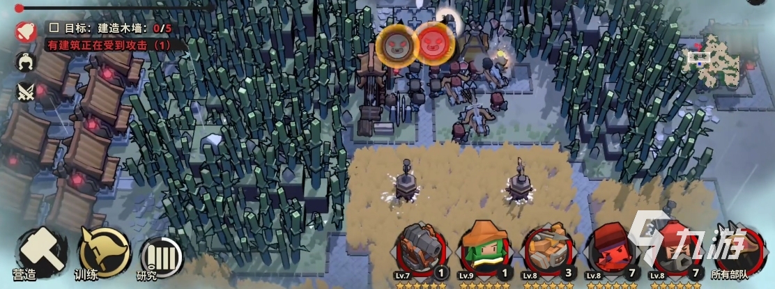在戰(zhàn)斗方面,因為游戲中會不斷面臨敵人的侵擾,在修建建筑時還要注意軍隊的養(yǎng)成和搭建。只要玩家有足夠的兵種,能組件出多個陣營來,建議在陣營中盡量多近戰(zhàn)攻擊+魔法攻擊為主,配以輔助兵種,職業(yè)的組合能堅持更多時間的輸出,從而抵抗住多輪的攻擊。同時在建筑城墻時還要注意地形之間的搭配,也能有好的抵御效果。
