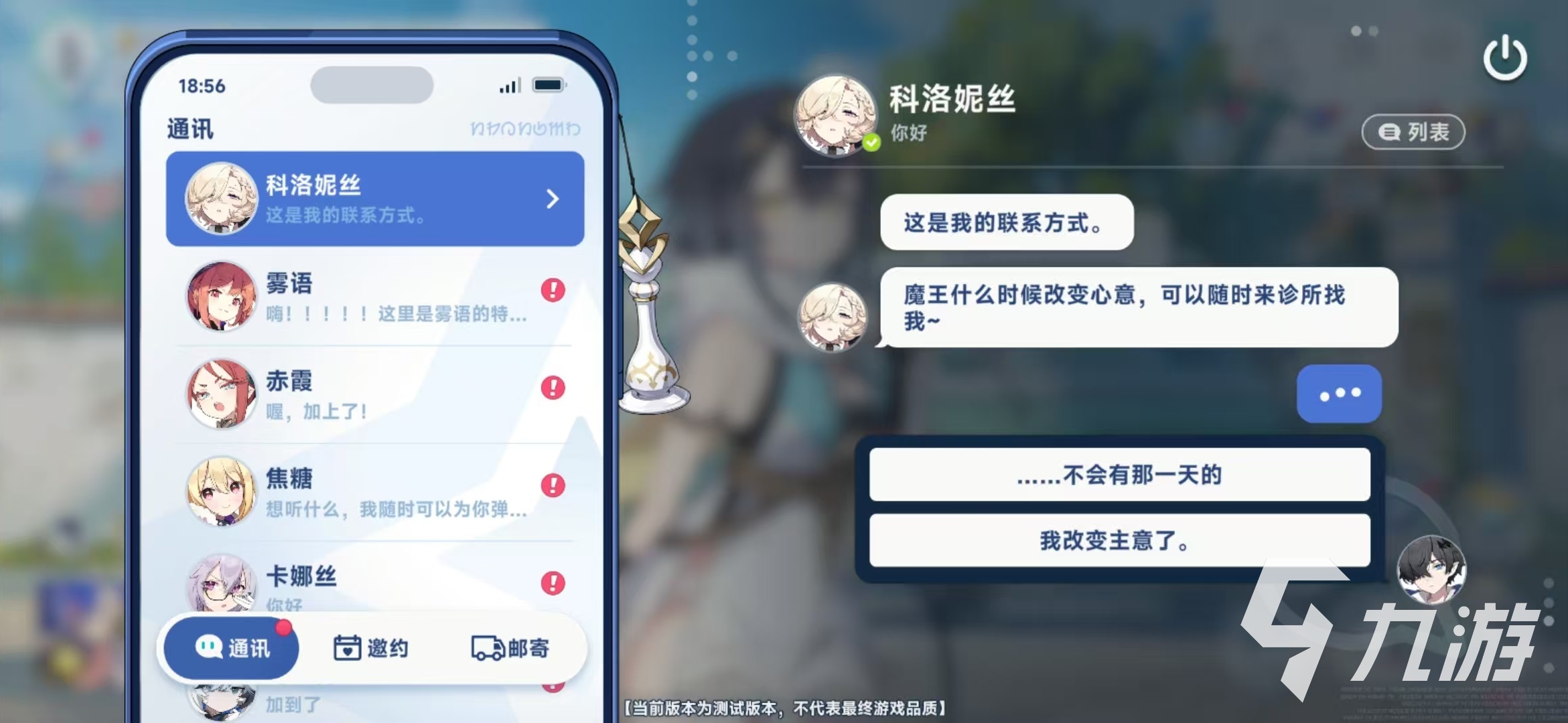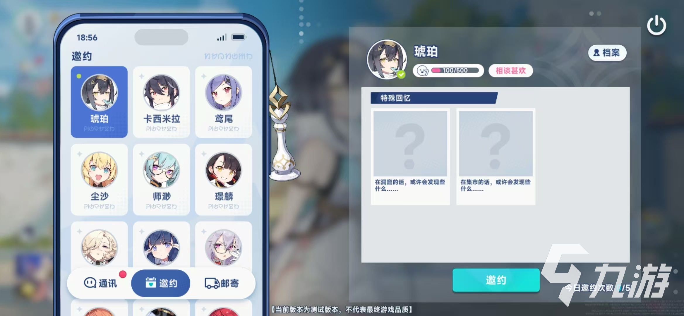 當(dāng)大家獲取到不同的角色之后,都會作為聯(lián)系人添加到心鏈的通訊列表中。日??梢院退齻冞M行聊天,在聊天的時候可選擇不同的選項進行應(yīng)答,觸發(fā)不同回復(fù)內(nèi)容。所有已經(jīng)出發(fā)的聊天會話,都可以在這里直接查看到,就和大家日常使用其他的聊天工具一樣??梢宰杂傻牟榭匆呀?jīng)完成或者是沒有完成的對話。玩家每天可以向角色發(fā)起5次邀約,在邀約中有特殊回憶任務(wù)中,完成之后就能提升好感度。