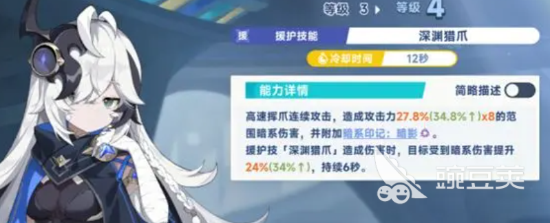 作為四星角色,她可以給敵人施加很多的影響,珂塞特后期在提升全隊(duì)的輸出方面,她也有相應(yīng)的技能可以使用,這種變相為全隊(duì)帶來(lái)輸出提升的效果也是很多場(chǎng)景里面會(huì)用得到的,另外珂塞特她本身也是有一定援護(hù)技能,可以給命中的一些敵人增加高額的暗屬性易傷效果,這類易傷后期通過(guò)她的潛能強(qiáng)化,進(jìn)一步提升這里效果達(dá)成的倍率,以及達(dá)到的攻擊提升效果也是非常簡(jiǎn)單粗暴的,所以她目前在能力相情上面也是有相應(yīng)的可以用到技能上面的能力。