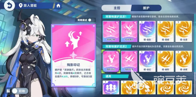 她本身強(qiáng)度上面也有很高的戰(zhàn)斗潛能可以搭配,而且珂塞特本身在覆蓋率上面也是比較高的,技能搭配好潛能的話,甚至在實(shí)戰(zhàn)范圍上面可以做到全程覆蓋的能力,那么此時(shí)給敵人帶來(lái)的負(fù)面影響效果才是最高的,她的這個(gè)殘影印記,就是利用她的援護(hù)技能深淵獵爪帶來(lái)的攻擊次數(shù)提升效果,這里會(huì)有4次提升之后,珂塞特每一次揮爪的時(shí)候,那么在激發(fā)攻擊提升上面會(huì)有4.6%的提成效果,這樣的殘影印記,后續(xù)在敵人身上也是會(huì)持續(xù)施加5秒的效果,最多的情況下可以疊加到三層,那么三層的百分比加到一起的話,珂塞特她本身的攻擊提升效果就會(huì)達(dá)到12%左右,那么在珂塞特的潛能方面,為她搭配這樣的殘影印記之外,還可以給她搭配一個(gè)無(wú)光落印。