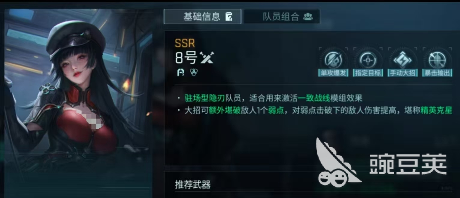 海茲曼屬于火力職業(yè),本身對群體一類的敵人擁有高額打擊的能力,清場能力極其強(qiáng)勢,斯特蘭妮則屬于狙擊手,戰(zhàn)斗中更依賴于隊伍的支援,但可組成的隊伍相對靈活;格拉蘇屬于輔助一類,擁有一定的輸出,對于隊友擁有著不錯的功能性支持;8號屬于隱秘的刺客,單體傷害高,戰(zhàn)場續(xù)航能力強(qiáng),但是在群攻時表現(xiàn)一般,一般是不作為核心培養(yǎng)對象的。