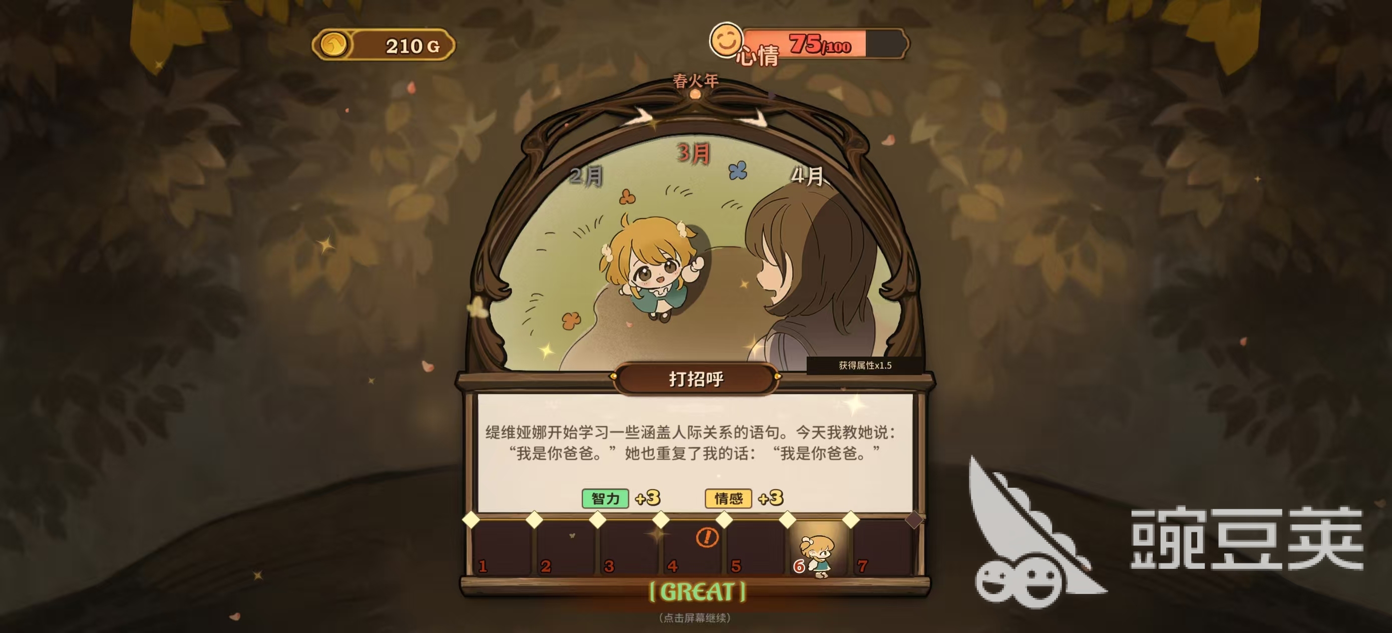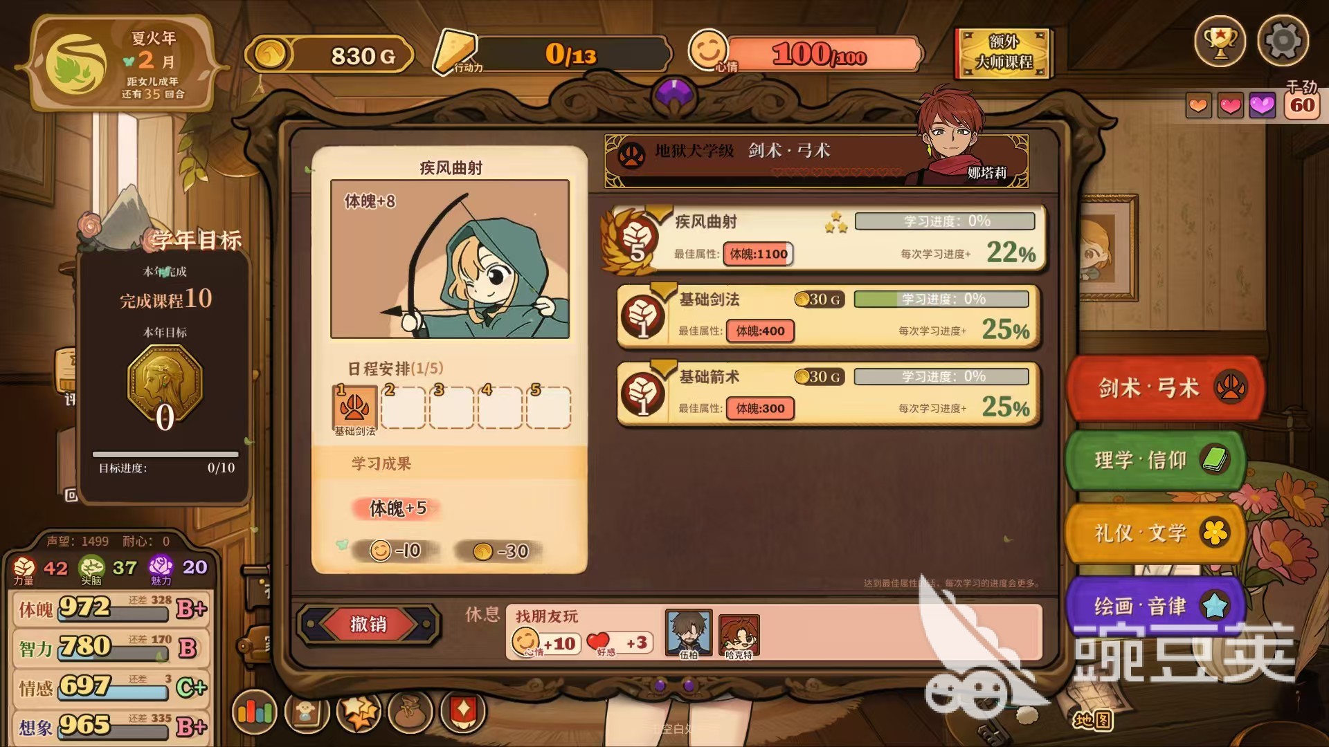 大家需要養(yǎng)成的內容比較多,主要包括好感度、四維屬性,學科課程、天賦技能、戰(zhàn)斗等級和裝備等,出現(xiàn)的一些特殊事件還會導致陣營的轉變。每天通過對話可增加好感度,有些選項需要消耗行動力或者是金錢,所以對資源也有著一定的要求,遇到女兒有心事的情況下,還需要隨時進行溝通,否則就會增加黑暗屬性。玩家可以通過地圖探索和互動行為等方式增加四維屬性,另一方面,課程也會增加一部分屬性,當滿足條件后直接就可以晉級,不需要大家再額外進行操作。學科課程就是每天的學習安排,不同階段課程有著很大的差別,玩家還可以酌情選擇對應的學習任務,每天有5個槽位可放置,有些需要支付金幣,這就需要一定的策略來進行選擇。