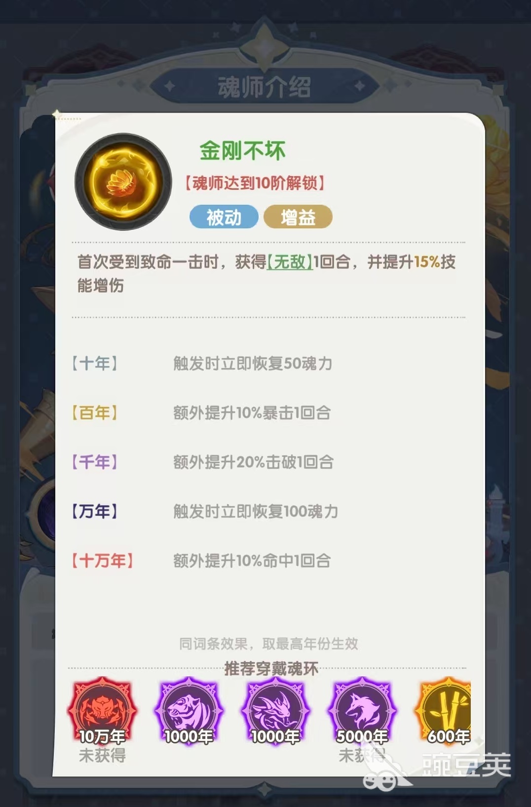 第1個被動是當(dāng)月關(guān)受到攻擊時,會獲得一層寒英狀態(tài),每層提升5%的暴擊傷害,釋放主動技能后會將所有的層數(shù)清除。在提升魂環(huán)的年限后,戰(zhàn)斗開始時最多直接自帶10層寒英,每次受到攻擊時都會獲得3層寒英。第2個被動孤芳自賞,每當(dāng)有隊友陣亡時,自身都可以獲得傷害加深效果,同時還有額外的防御提升、攻擊提升這兩種狀態(tài)。最后一個是在首次受到致命一擊時直接激活金剛不壞,獲得無敵效果,持續(xù)一回合,并提升技能傷害。在觸發(fā)時還能立即恢復(fù)魂力,這樣月關(guān)就相當(dāng)于有了兩條命。