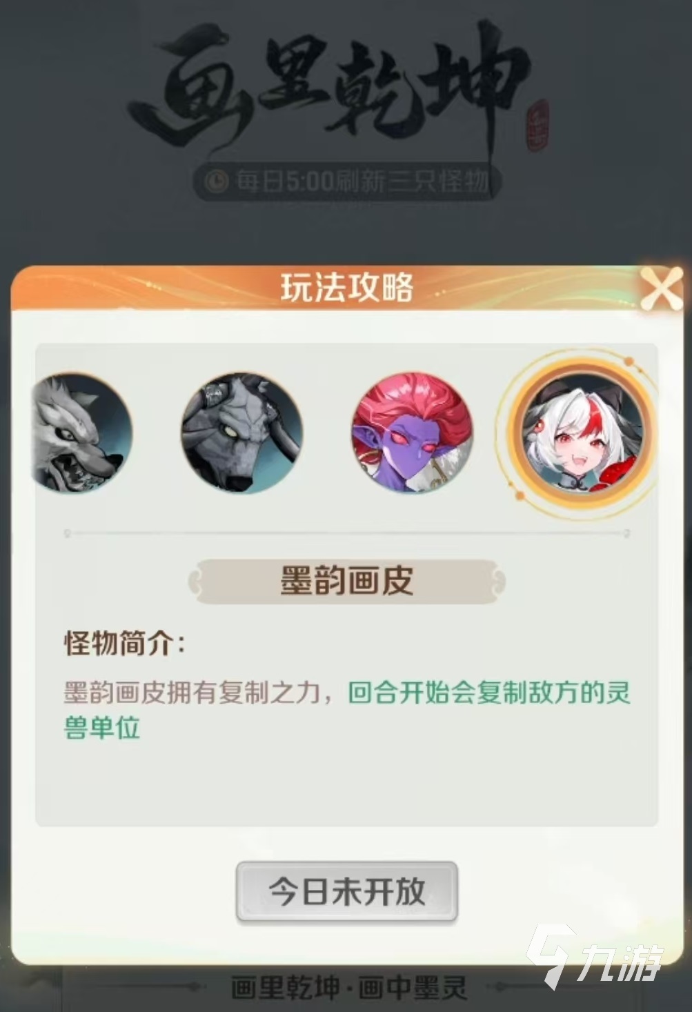 第四個(gè)墨韻牛靈,擁有存活之力,在畫(huà)中世界中和另一只墨韻牛靈同生共死,也需要合理安排好輸出的順序。第五個(gè)畫(huà)中魔卷,擁有強(qiáng)化之力,每回合給畫(huà)中生物附加強(qiáng)力光環(huán)增加攻擊,需要提前解決。第六個(gè)墨韻畫(huà)皮,擁有復(fù)制之力,每回合開(kāi)始時(shí)會(huì)復(fù)制敵方的靈獸單位。因?yàn)槊看味际请S機(jī)選擇三只,所以大家必須在每場(chǎng)活動(dòng)前都觀察一下刷新的怪物特點(diǎn),和隊(duì)友溝通好之后確定擊殺的順序和策略才能戰(zhàn)勝敵人。