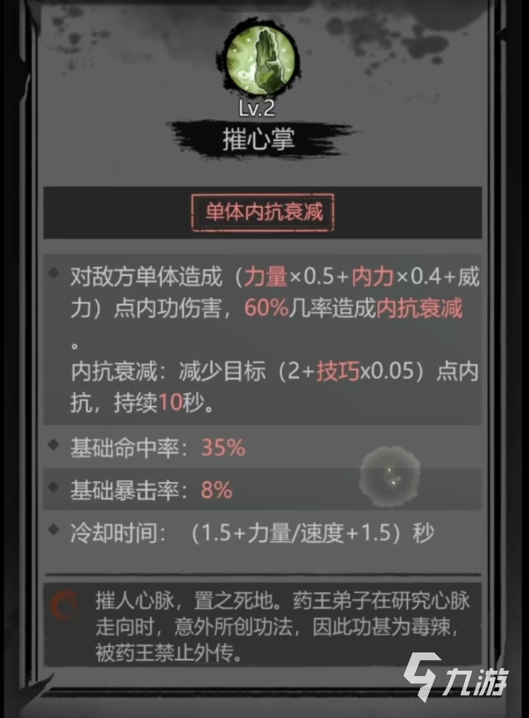 催心掌除了對(duì)敵人造成單體傷害之外,還有幾率造成內(nèi)抗衰減,內(nèi)抗衰減效果可降低目標(biāo)內(nèi)抗,持續(xù)10秒鐘。降低內(nèi)抗之后,我方的內(nèi)攻型輸出就可以打出更高的傷害,所以醫(yī)師很適合與陰陽師這樣的內(nèi)功輸出強(qiáng)勢(shì)職業(yè)一起搭配起來。作為游戲中的核心治療職業(yè),醫(yī)師在團(tuán)隊(duì)中有著不可替代的作用,無論是降低抗性提高輸出,還是在持久戰(zhàn)中進(jìn)行續(xù)航,都是隊(duì)伍中不可或缺的角色。
