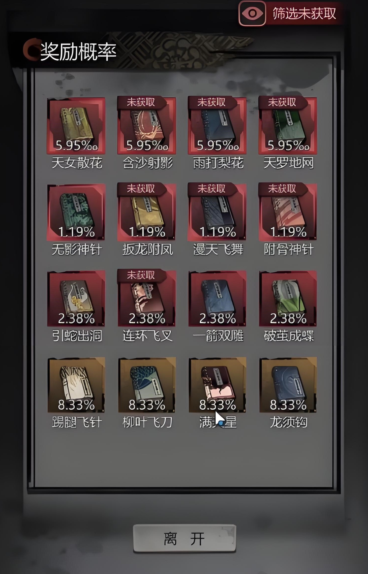 游戲中玩家能獲得的秘籍內(nèi)容通過藏書閣查看,其中紅色品質(zhì)的秘籍品質(zhì)最高,金色次之,相對的紅色品質(zhì)的秘籍抽取概率最低。點擊秘籍的詳情能查看秘籍對于不同職業(yè)職業(yè)的加成效果。