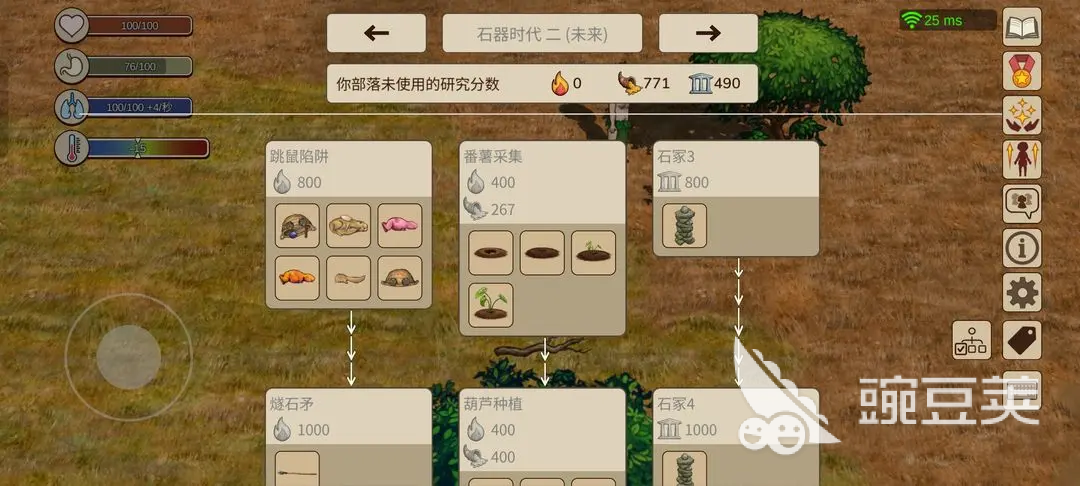 工具制作,也要先從簡單的開始,先打造一些簡易的物品,后續(xù)解鎖了高級工具,再去制作。草碗可以盛放食物,這是前期維持生存必備工具。當(dāng)然角色也是有生存數(shù)值的,要時刻關(guān)注角色狀態(tài),比如生命值,饑餓值之類的,饑餓就需要吃東西,受傷要使用草藥回復(fù)。前期減益選擇新手部落,這里難度會低一些,還能和其他玩家交流學(xué)習(xí)。