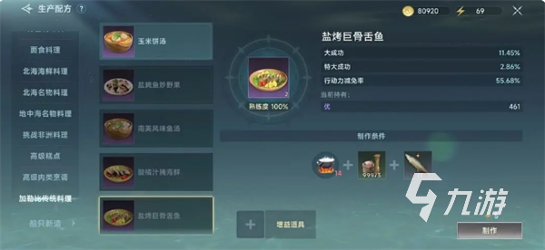 先了解下魚類的獲取以及魚的用途,魚是三種頂級料理必須要使用的原材料,能通過釣魚獲取,當然也可打劫其他人,但是釣魚的途徑相對簡單正向;金槍魚可以用來制作金槍魚面;巨骨舌魚用于烹飪巨骨舌料理;軍曹魚和大蝦是制作酸菜魚的原材料。