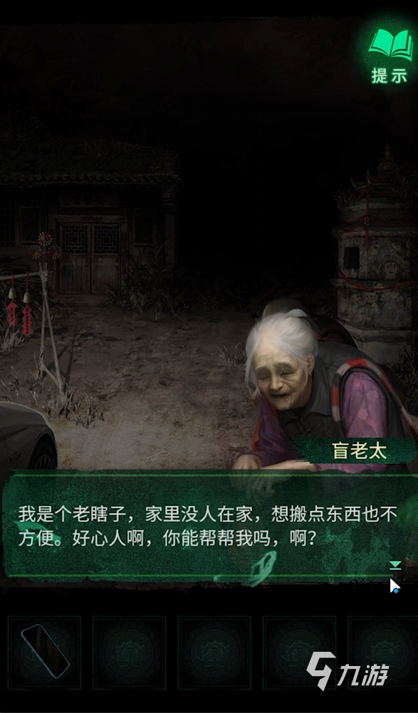 當(dāng)踏入第二章,首先映入眼簾的是一個(gè)透著詭異氣息的場(chǎng)景。初始在村口位置,地上擺放著幾個(gè)籃子,你需要依次點(diǎn)擊每個(gè)籃子,從中拾取到玩具手槍、火柴以及木頭哨子這幾樣關(guān)鍵道具。緊接著,切換場(chǎng)景來到小賣部窗口,把剛剛拿到的木頭哨子拖進(jìn)去,這時(shí)就能順利獲得豆奶。隨后回到村口,有一座古塔,將豆奶拖進(jìn)古塔之中,便可得到門神畫像。拿著門神畫像,切換到有門的場(chǎng)景,點(diǎn)擊右側(cè)的門,把門神畫像拖拽上去,門便會(huì)打開,進(jìn)入屋內(nèi)。