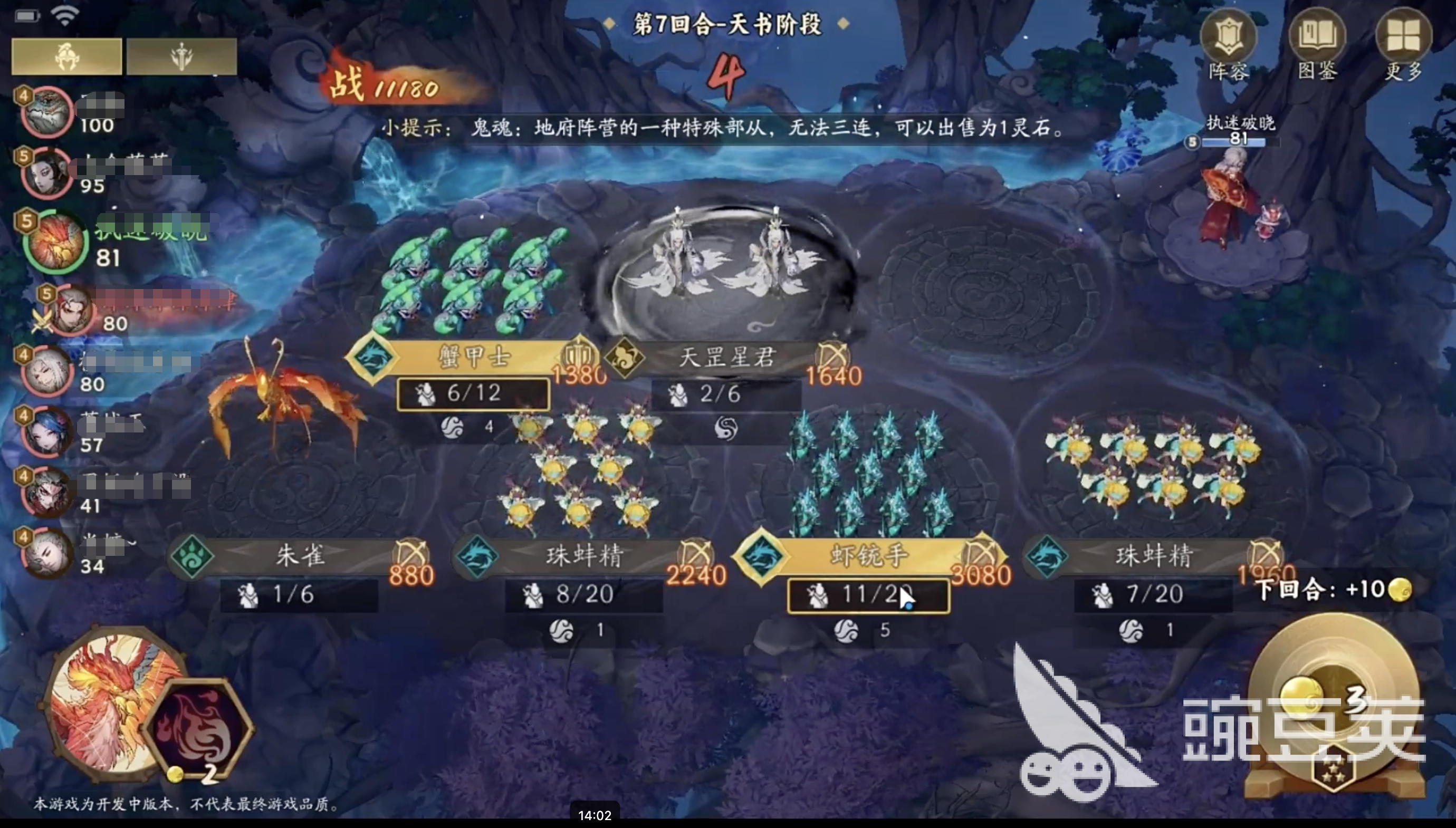 在對局中,前中期的重點(diǎn)是保證場面的穩(wěn)定,優(yōu)先抓取珠蚌精、泣珠鮫女和珠淚天女,能多放幾張就多放幾張。如果有機(jī)會拿到鮫人前鋒,也要優(yōu)先留用,因?yàn)樗軌驇椭e攢龍珠,并在龍珠被摧毀時獲得額外成長,為陣容提供轉(zhuǎn)型的可能。前期還可以搭配蟹甲士等前排部從來過渡,必要時選擇一些經(jīng)濟(jì)卡維持手牌和資源,不必急著升本,只要穩(wěn)住節(jié)奏,陣容成型的速度并不慢。
