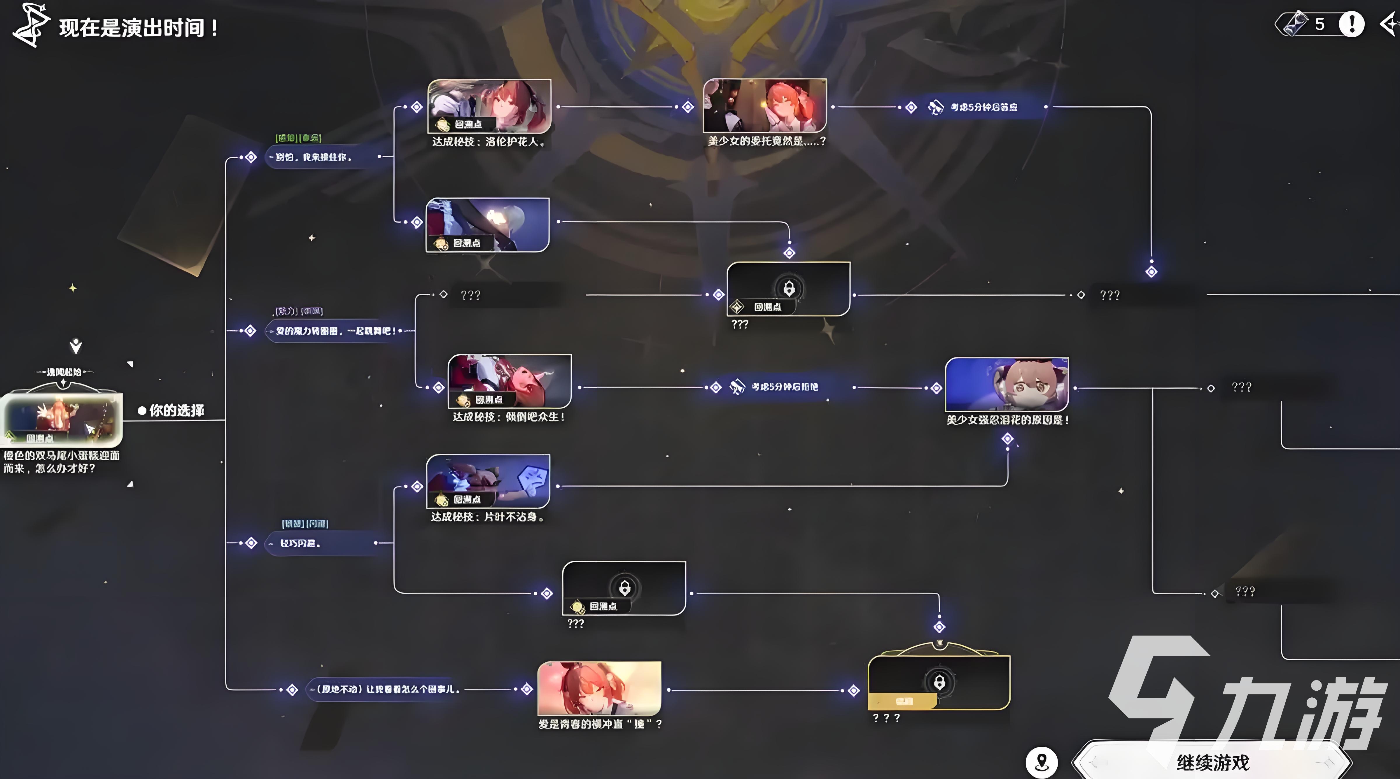 在游戲中還引入了一個當下非常新奇的玩法:骰子玩法。不管是角色的基礎屬性還是接下來劇情的發(fā)展都是通過骰子的點數來決定,這樣的設定也就是說明游戲的劇情會有很多的分支。通過劇情系統(tǒng)玩家能看到哪些劇情會有不同的選項,沒有解鎖的分支劇情會被鎖住,最后的結局如何就看玩家投擲骰子的運氣了。