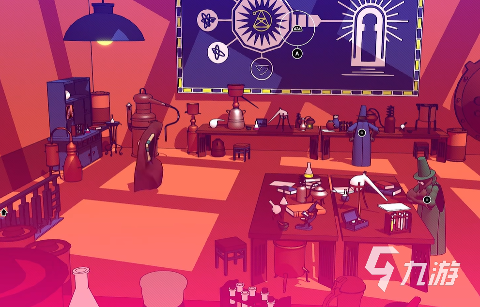 然后會出現(xiàn)一些謎題,這個謎題的答案如果玩家無法找到的話,可以去附近的黑板搜搜答案,雖然黑板上的答案都是一些類似圖像的東西,但是玩家們只需要翻閱書籍的時候?qū)⑦@些圖案一一對應(yīng),此時書本上就會出現(xiàn)對應(yīng)的圖畫,這個圖畫是解密的管家。