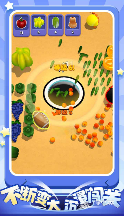 超級洞洞樂會呈現(xiàn)出一個立體的卡通世界,在這個世界里玩家將會變身成一只鼴鼠,為了過冬需要不斷的去收集各種食物,在挑戰(zhàn)開啟之后,玩家可以選擇最常規(guī)的模式,在這個模式下,玩家可以隨意操控黑洞收集場景里面的物品,只要黑洞靠近,這些物品都會被吸收進去,關(guān)卡會設(shè)定時間,要在規(guī)定的時間內(nèi)盡可能多的吸收足夠多的物品,只要達成這一目的,玩家就需要靈活的操控黑洞,并且按照場景里這些物品的擺放軌跡進行收集。