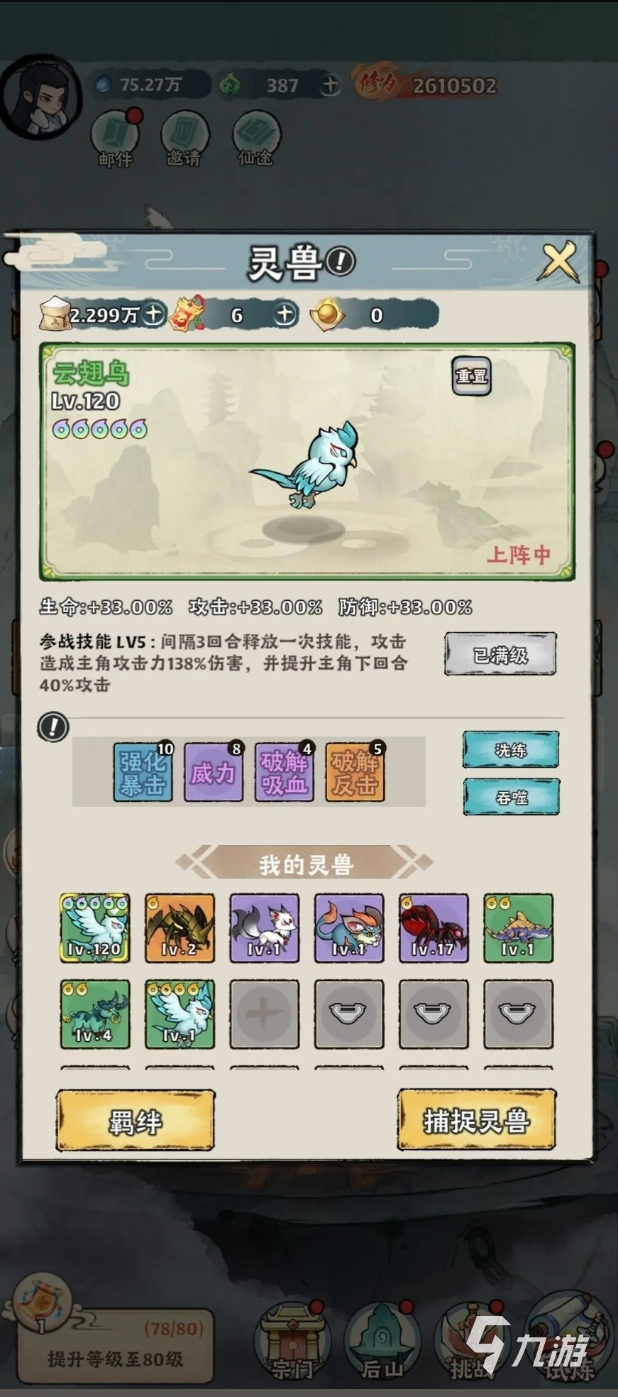 平民靈獸培養(yǎng)策略也是需要大家知道的,前期的開荒階段主養(yǎng)云翅鳥,這是新手任務(wù)完成之后送給玩家的,搭配噬金蟲效果最佳。中期資源積累階段要轉(zhuǎn)型麒麟,搭配金烏血脈才能達到最大化輸出,可以選擇玄武和紅蜘蛛補充流派的強度。后期PVP需要麒麟加鐵角?;蛘呤怯内を?,PVE需要紅蜘蛛和噬金蟲搭配。