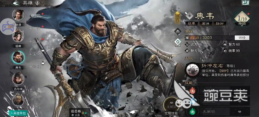 如果大家還想要魏國(guó)的前排武將,最后給大家推薦一個(gè)典韋,典韋在游戲當(dāng)中是經(jīng)常使用自身的折沖左右技能來(lái)給隊(duì)友分擔(dān)傷害,所以在游戲里面典韋一般放在前排用的情況是比較多的,他可以在分擔(dān)一些敵人傷害之后還帶來(lái)足夠的反擊,反擊到敵人之后,他還可以跟其他的隊(duì)伍武將一起觸發(fā)追擊格,如果他在追擊格范圍之內(nèi)讓其他隊(duì)友處于最佳輸出狀態(tài)的話(huà),那么他帶來(lái)的防御性技能還可以增強(qiáng)團(tuán)隊(duì)整體的生存能力。