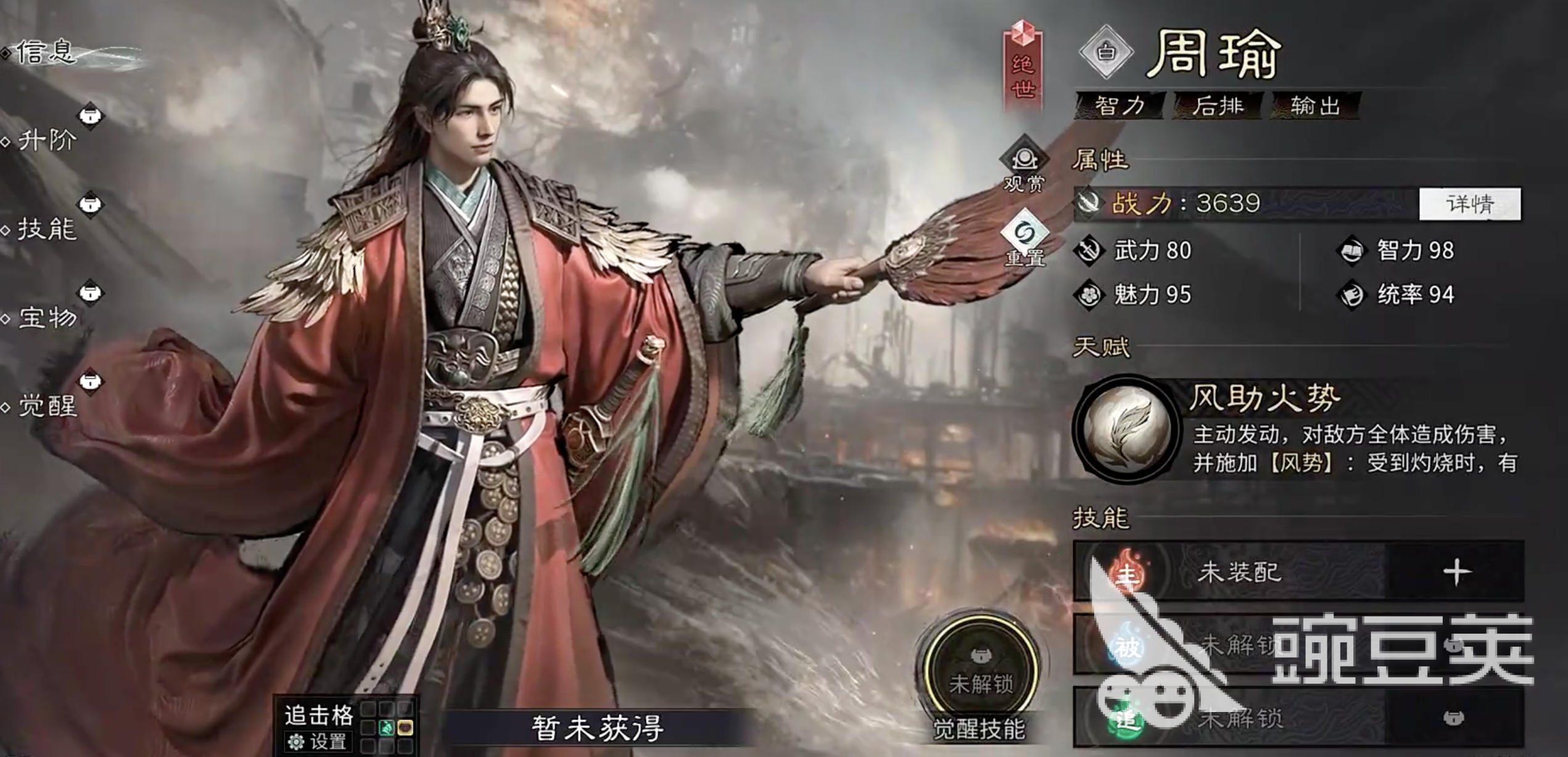 周瑜是的天賦【風(fēng)助火勢】,釋放后能對敵方全體造成傷害,如果目標已經(jīng)處在灼燒狀態(tài)下,還會受到額外傷害。周瑜和陸遜、黃蓋的技能配合起來,就能形成一整套完整的火攻體系,往往在幾回合之內(nèi)就能把敵人的血量減少一大截。