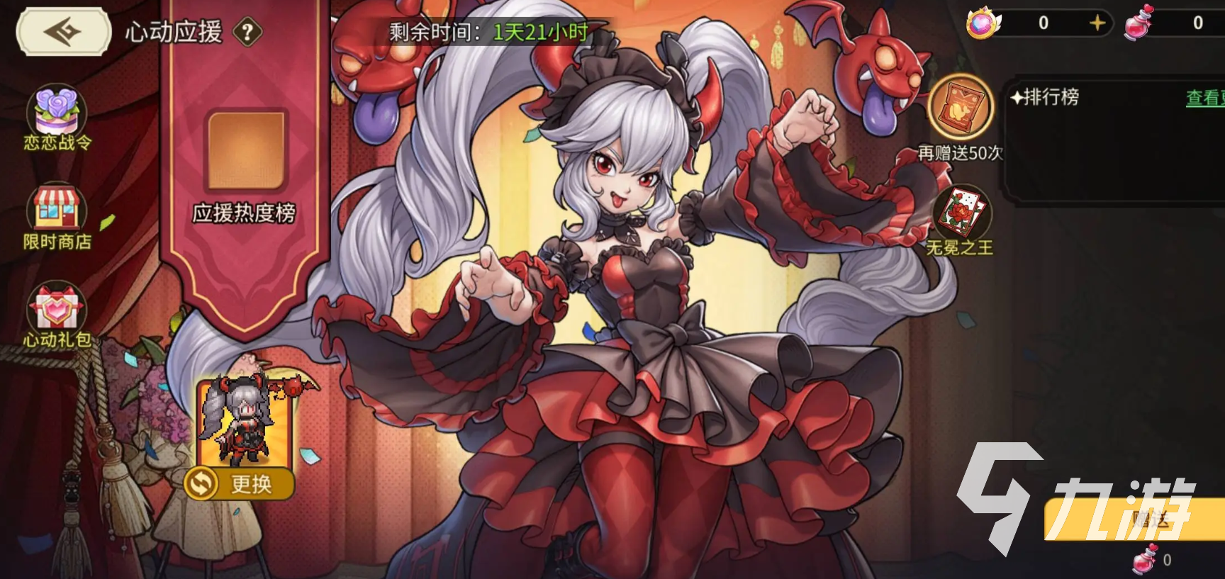 然后是“心動(dòng)應(yīng)援”,在活動(dòng)的期間,大家可以選中一位心動(dòng)女神來(lái)應(yīng)援,每一次的應(yīng)援能獲取到“綺情邂逅”以及“應(yīng)援積分”,并且還會(huì)獲取到一份隨機(jī)的回禮獎(jiǎng)勵(lì),到時(shí)間后全服應(yīng)援最高的英雄,還能在后續(xù)獲取到專(zhuān)屬時(shí)裝。