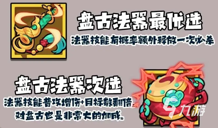 法器與遺物的選擇也有影響,盤古最推薦具備概率額外釋放必殺技的,其次是增傷類、目標(biāo)數(shù)增加類的。遺物方面,絞肉機(jī)、掃帚、小刀、食吸塵器等物理吸血與流血增強(qiáng)型道具則能有效提升團(tuán)隊(duì)續(xù)航能力。