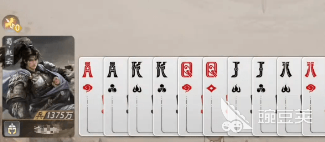 關(guān)羽的“單騎”可以在打出長蛇陣,也就是點數(shù)連續(xù)的順子牌時,獲取到1張萬能牌,他的“武圣”能在場上其他人出“長蛇陣”的時候,從中任意挑選一張加入自己的手牌當(dāng)中。
