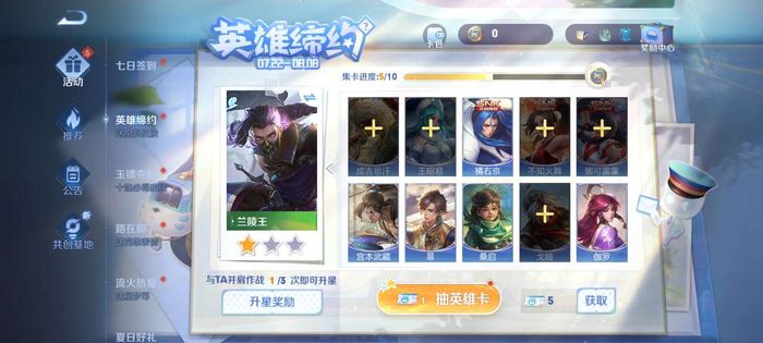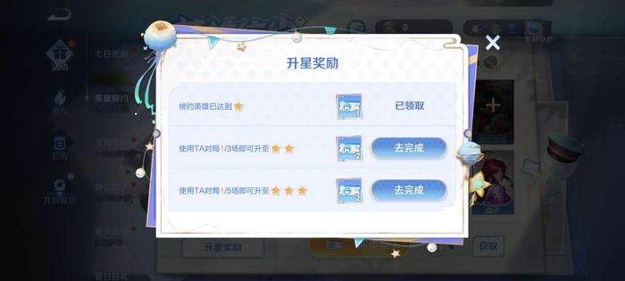 然后這里面大家可以跟一個(gè)自己擅長(zhǎng)的英雄進(jìn)行締約,然后使用它進(jìn)行戰(zhàn)斗,可以提升星級(jí)。星級(jí)提升也可以給大家不少的抽卡券,而且這個(gè)升級(jí)任務(wù)的難度也不高,大家只需要對(duì)戰(zhàn)5場(chǎng)之后就可以輕松達(dá)到3星了。