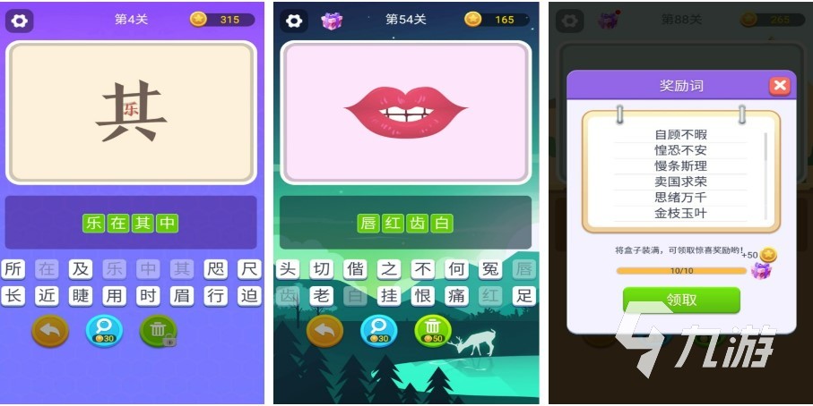 這是一款休閑玩法的游戲,在這里感受成語的文化魅力吧。既可以輕松快樂的享受這款游戲,又能夠鍛煉你的思維能力,這款游戲不限制任何年齡段的玩家哦。這是由多個小游戲組成,如:成語接龍,看圖猜出成語,成語來消消樂,填詞達(dá)人。游戲的每關(guān)都有不同的玩法和挑戰(zhàn),玩家需要猜出空出地方的漢字哦。