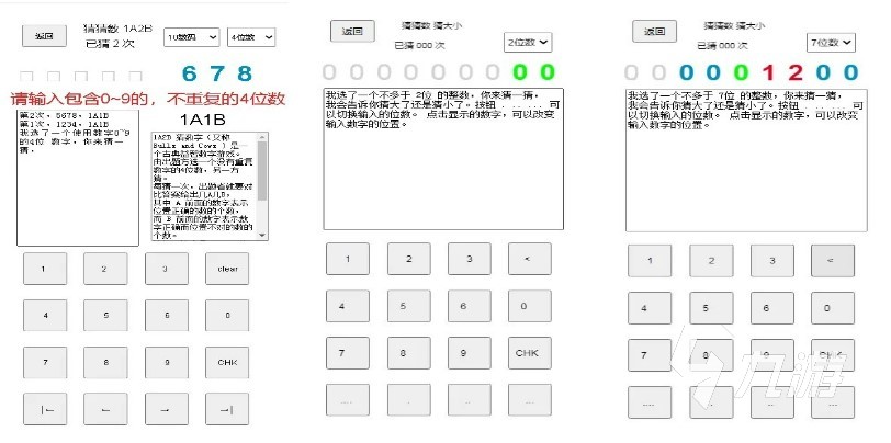 快來一起猜猜數(shù)字吧,這里面有兩個好玩的小游戲,一個是猜測數(shù)字的大小,還有1A2B的猜數(shù)字的玩法?,F(xiàn)在加入了全新的版本,支持玩家自由進(jìn)行猜字。游戲會記錄玩家已經(jīng)猜測的次數(shù),數(shù)字是由四個完全不同的數(shù)字組成。一方進(jìn)行選擇數(shù)字,一方來猜測,答案都是對應(yīng)著幾A幾B的模式,快來試試吧。