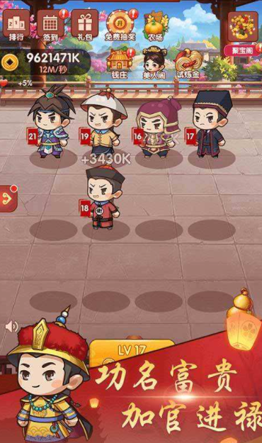 這款皇帝游戲玩法主要就是一個放置掛機(jī)的設(shè)定,通過不斷提升自己隊伍的一個實力來獲得不錯的收益加成。隨著收益的提升,從而達(dá)成一個當(dāng)皇帝的夢想。