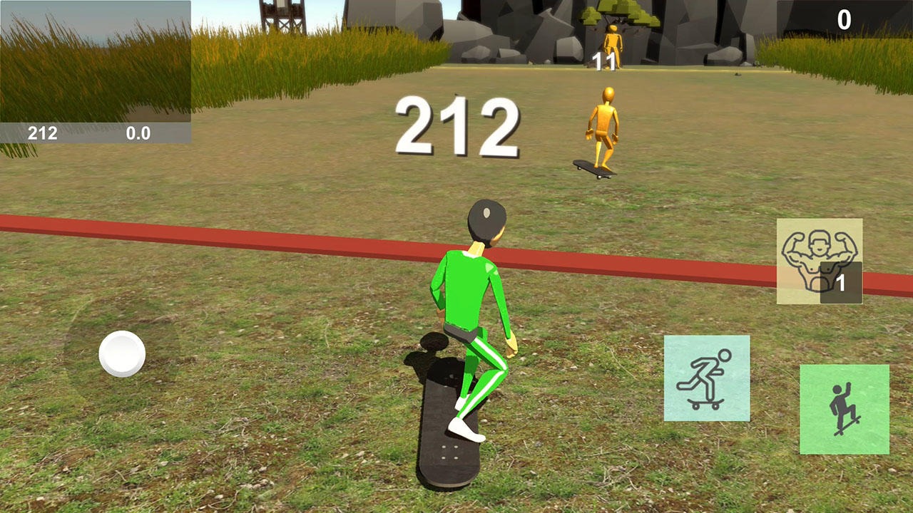 游戲玩法也比較簡(jiǎn)單,在木頭人背對(duì)著你的時(shí)候,用滑板前行。而當(dāng)木頭人回頭的時(shí)候,不可以移動(dòng)或者轉(zhuǎn)向。如果一單你移動(dòng)了,就會(huì)被鎖定,然后被攻擊。當(dāng)然,也有容錯(cuò)的機(jī)會(huì)。當(dāng)你被鎖定之后,也可以用金身來(lái)躲避一次攻擊。
