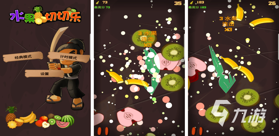 玩家們可以在這款切水果游戲中盡情發(fā)泄你的煩惱,將各種煩心事通過不斷暢快切切切來排解掉!游戲為玩家設(shè)置了兩種模式,分別是經(jīng)典和計時,其中小編推薦大家可以優(yōu)先嘗試一下計時模式,因為這個模式我們可以切得更爽,不用擔(dān)心任何的失誤!玩家只需要將每一個飛過屏幕的水果給切碎即可,當(dāng)你連續(xù)切碎時還會有連擊成就展示出來哦,你也來挑戰(zhàn)一下看看自己最高能奪得多少分吧!