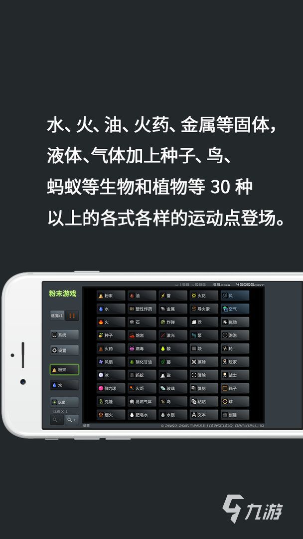 粉末游戲是一款沙盒游戲,游戲全程是以馬賽克形式來(lái)打造各種生物,之后再用粉末呈現(xiàn)出現(xiàn)象的物理形態(tài),玩法簡(jiǎn)單有趣。