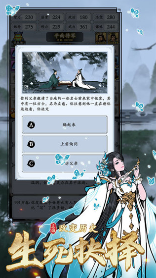 置身于三國(guó)時(shí)代背景的體驗(yàn)之旅,玩家將以文字為橋梁,細(xì)細(xì)品味那段波瀾壯闊的歷史韻味。每當(dāng)故事中事件悄然展開,玩家便需依據(jù)情境給出的選項(xiàng),做出自己的抉擇。游戲畫風(fēng)別具一格,能讓大家沉浸其中。在這里,策略的制定全憑大家的智慧與想法。游戲里的養(yǎng)成體系設(shè)計(jì)得相當(dāng)精妙,大家可以悉心培育心儀的角色,同時(shí)對(duì)歷史故事的還原也十分到位,讓大家仿佛親歷那個(gè)英雄輩出的時(shí)代。