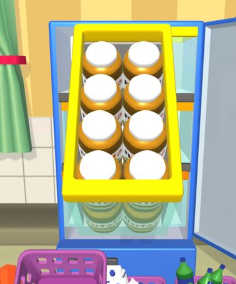 這款游戲需要玩家們將不用形狀,不同類型的物品,通過合理的空間布局,最大限度的將所有物品整齊的放進冰箱中,來獲取游戲獎勵。另一種玩法就是,在對應的位置上需要放上與之對應的食物,同時還要求我們將其他食物合理的放入,這就考驗各位玩家們的空間布局能力了。