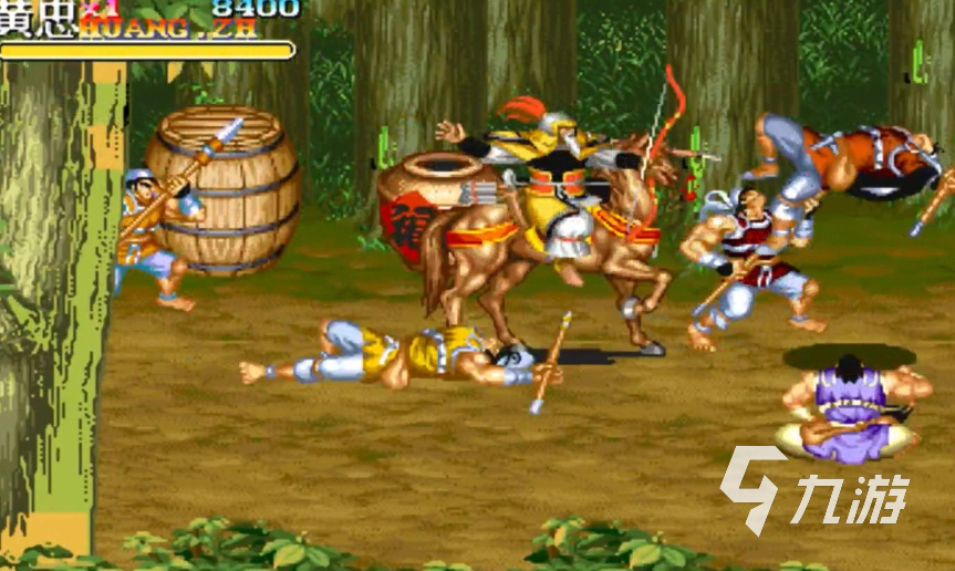 這是款根據(jù)同名街機游戲制作的橫版清關(guān)類單機手游,玩家在本作中可以享受騎馬與砍殺的快感,可破壞場景道具的設(shè)定與原著街機游戲如出一轍,絲滑爽快的打擊手感和經(jīng)典的音效讓人欲罷不能,經(jīng)典的BOSS和逼真的戰(zhàn)場氛圍也為本作增色不少,倚天劍、流星錘等掉落在地的武器你也可以拾取使用。