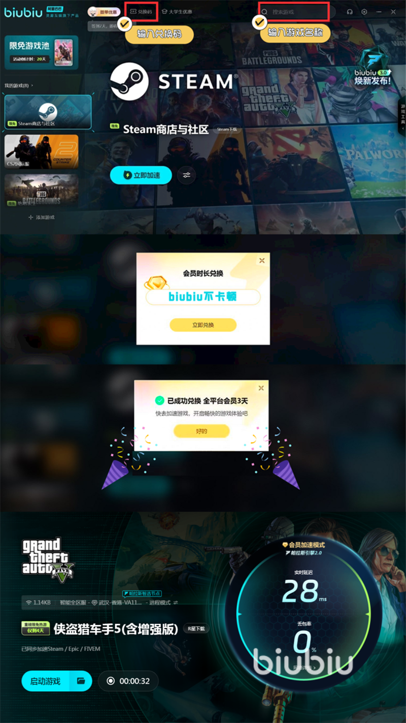 但是要注意,這樣操作可能會導致文件完整性出現(xiàn)問題,所以一定要謹慎選擇。如果大家在操作steam平臺的時候遇到一些問題,例如連接不上等,使用biubiu加速器就能。解決。Biubiu目前贈送三小時會員時間給新注冊的賬號,新人可以直接注冊號后打開使用,還有一個兌換碼【biubiu不卡頓】,可以兌換72小時會員時間,而且每個biubiu號都可以兌換一次。后續(xù)大家運行這款游戲的時候也可以直接使用biubiu進行優(yōu)化,這樣可以讓游戲的運行更為順暢。