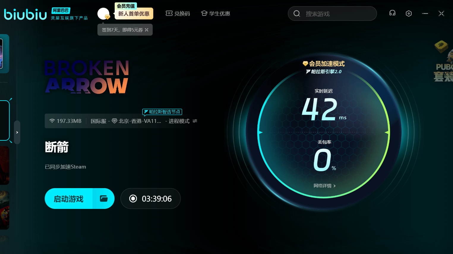 3. 網(wǎng)絡(luò)問題。最氣人的就是“無征兆斷連”了,明明Ping值正常,指揮系統(tǒng)卻突然失靈。主要是因?yàn)榉?wù)器遠(yuǎn)在俄羅斯或歐美國家,因此數(shù)據(jù)包在長距離的路線上丟失導(dǎo)致的。建議一定要先打開biubiu加速器,再開游戲,它針對《斷箭》部署的俄服專線,經(jīng)實(shí)測比普通線路延遲低40%,數(shù)據(jù)包丟失率維持在0。